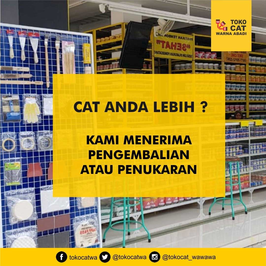 Keunggulan dari Toko Cat WAWAWA lainnya adalah pembelian sisa cat, untuk kelebihan cat yang Anda miliki, jaminan harga murah, buka mulai jam pagi hingga malam dan membership point.