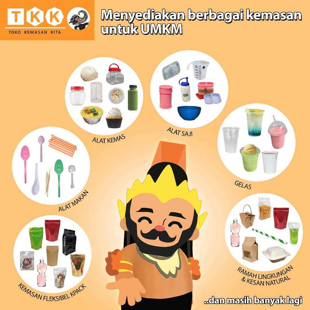 Toko Kemasan Kita (TKK) menyediakan berbagai kemasan untuk keperluan UMKM, diantaranya: Kemasan Fleksibel KPack, Alat Makan, Alat Kemas, Alat Saji, Gelas, Kemasan Ramah Lingkungan & Berkesan Natural.